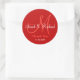 Vinhetas iniciais com noiva e nome noivo, data de casamento e obrigado mensagem para expressar sua gratidão no dia do seu casamento ou em qualquer ocasião especial. Este adesivo de casamento monograma está em cor vermelha. Mais cores estão disponíveis para sua escolha. Você também pode personalizar a cor e a fonte usando o botão personalizar o recurso abaixo do produto