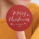 Roteiro elegante vermelho Vinheta de Natal Feliz para adicionar aos presentes sob a árvore ou usar como selos de envelope, com estrelas festivas de Férias e personalizadas com o nome da família ou qualquer texto personalizado, e ano.