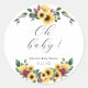 Sele o envelope do seu convite ou lembrancinhas com esses adesivos clássicos "oh baby!". Apresentando "oh baby!", nome e data do evento emoldurados por uma grinalda de água-forte de folhagens, girassol e rosas. Coordena com a coleção Autumn Delight encontrada na Loja Zazzle Adore Paper Co.