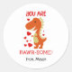 Dinossauro bonito, adesivos personalizados para Dias de os namorados. Dinossauro laranja adorável com linha de texto modelo para o seu nome. Perfeito para festas escolares infantis, favores de escritório, etc.