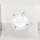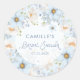 Um detalhe simples e bonito para os brindes do seu chá de noiva. Este adesivo circular floral azul com um laço macio funciona lindamente para selar envelopes, decorar sacolas de brindes ou adicionar a pequenos presentes da festa.