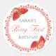 Adicione um toque final sofisticado aos brindes da sua festa com esses Adesivos Red Lace Berry First Birthday. Este design apresenta uma intricada moldura de renda quadrada carmesim que cria uma estética "coquette" vintage, perfeita para uma celebração de marco de alta classe.