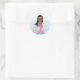 Este adesivo de sereia redonda é de cor púrpura. O adesivo é desenhado com uma bela sereia africana-americana com cabelo comprido e rabo de peixe roxo sobre fundo do mar azul.