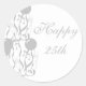 Adesivo redondo mostrado em branco e prata para o seu 25º aniversário.