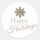 Adicione um toque de elegância às suas correspondências e pacotes de Natal com este lindo adesivo redondo. O simples e limpo fundo branco é adornado com um floco de neve em dourado escovado no topo, simbolizando a beleza serena da época. Abaixo dele, "Felizes Festas" é apresentado de forma elegante em tipografia clássica e manuscrita, capturando o espírito de tranquilidade e boa vontade. Perfeito para adicionar um toque carinhoso aos seus cumprimentos festivos, esses adesivos são uma maneira encantadora de espalhar alegria e calor nesta época de Natal. Use-os para selar envelopes, decorar embrulhos de presentes ou adornar brindes de Natal. Eleve a apresentação das suas festas de fim de ano com este design cativante e significativo.