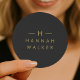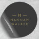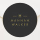 Um simples adesivo redondo com monograma personalizado e estilo, apresentando uma tipografia minimalista e elegante em dourado sobre um fundo preto elegante. Este design refinado pode ser facilmente personalizado com suas iniciais, nome e linha de recurso opcional para um visual único e exclusivo. Perfeito como adesivo de casamento, selo de presente diário ou selo de envelope elegante, este modelo versátil adiciona um toque de sofisticação a qualquer ocasião. Ideal para casamentos, pequenas empresas, papelaria ou correspondência pessoal, este design minimalista combina estilo atemporal com charme moderno. Uma maneira simples e bonita de elevar embalagens, brindes ou convites com elegância sem esforço.
