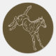 Uma linha digital transparente desenhando sobre um fundo marrom de sela de um jovem e fofo, engraçado e engraçado, galhado alegremente, correndo, pulando e chutando suas pernas traseiras no alto do ar, jogando alegremente e gastando sua abundância de energia jovem. Este desenho transparente é projetado para o verdadeiro amante de cavalos e pode ser aplicado à cor de fundo de sua escolha, mas é mais visível nos tons mais escuros. Você pode alterar o tamanho da imagem, adicionar imagens de diferentes tamanhos (copie-cole a imagem) e adicionar seu próprio texto. Este design de potro de cavalos está disponível como desenho de linha, uma castanha de uni-coloração e um castanho multicolorido.