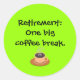 Adesivo "Retirement: One big café break" da MINHA ARTWORK ORIGINAL em www.zazzle.com/virginia5050 http://www.zazzle.com/i_love_template_postage-172008237149036709 http://www.zazzle.com/life_begins_at_retirement_sticker-217796315800186075 http://www.zazzle.com/surrealistic_fish_artwork_speaker-166322133275425626