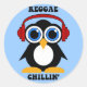 Pinguim de smoking bonito e legal, com fones de ouvido vermelhos ouvindo camisetas de música reggae e presentes para amantes de pinguins. Roupa de pinguim único, original e engraçado e presentes para amantes de música reggae e pessoas que gostam de relaxar.