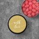 O adesivo de favor de casamento com as palavras "com amor" em um texto cursivo relaxado em branco contra uma cor de fundo editável (clique em personalizar para acessar). Personalize-o substituindo o texto do marcador de posição. Para obter mais opções, como alterar a fonte e seu tamanho/cor, expanda a curva/contrato ou o espaçamento entre letras, clique no botão "Personalizar". *Observe que a Marca d'água do Zazzle que aparece na visualização de zoom NÃO aparecerá no produto impresso final. © Rosewood e Citrus
