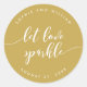 O adesivo de favor de casamento com as palavras "deixe o amor brilhar" em um script cursivo relaxado em branco contra uma cor de fundo editável (clique em personalizar para acessar). Personalize-o substituindo o texto do marcador de posição. Para obter mais opções, como alterar a fonte e seu tamanho/cor, expanda a curva/contrato ou o espaçamento entre letras, clique no botão "Personalizar". *Observe que a Marca d'água do Zazzle que aparece na visualização de zoom NÃO aparecerá no produto impresso final. © Rosewood e Citrus
