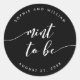 Vinheta de casamento com as palavras "mint to be" em um script cursivo relaxado em branco contra uma cor de fundo editável (clique em personalizar para acessar). Personalize-o substituindo o texto do marcador de posição. Para obter mais opções, como alterar a fonte e seu tamanho/cor, expanda a curva/contrato ou o espaçamento entre letras, clique no botão "Personalizar". *Observe que a Marca d'água do Zazzle que aparece na visualização de zoom NÃO aparecerá no produto impresso final. © Rosewood e Citrus