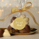 Vinheta de favor de casamento com as palavras "amor e obrigados" em um texto cursivo relaxado em branco contra uma cor de fundo editável (clique em personalizar para acessar). Personalize-o substituindo o texto do marcador de posição. Para obter mais opções, como alterar a fonte e seu tamanho/cor, expanda a curva/contrato ou o espaçamento entre letras, clique no botão "Personalizar". *Observe que a Marca d'água do Zazzle que aparece na visualização de zoom NÃO aparecerá no produto impresso final. © Rosewood e Citrus
