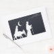 Design de Natal único com um selo branco de Maria e José na viagem a Belém vista à distância.