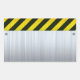 Uma placa de metal escovada 3d rebaixada e rebatida sobre um fundo de faixas de perigo de construção. Personalize este produto de excelente com o seu próprio texto, monograma, logotipo, slogan da empresa ou mensagem pessoal de código de bar QR digitalizável! (clique no botão laranja "Personalizar!" acima)