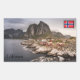 Foto da paisagem da tradicional aldeia pesqueira Hamnøya com as suas casas de barco vermelho em madeira. Localizado na costa das Ilhas Lofoten, no Norte da Noruega, Escandinávia. Foto © Sebastian Worm.