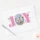 Este adesivo retangular é uma adição perfeita aos presentes de Natal. Apresenta a palavra "JOY" a rosa com bagas vermelhas e verde, mas com uma reviravolta única - a sua fotografia substitui a letra "O". O adesivo também inclui o texto "Feliz Natal" acima da sua foto e o nome da sua família abaixo dela. Espalhe um pouco de alegria cor-de-rosa neste feriado com este adesivo personalizado.