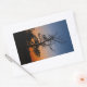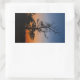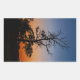 Uma foto impressionante de uma silhueta de árvore em um fundo solar laranja.