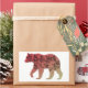 Esta design é o esboço de um urso com um pomar vermelho ou marrom para bege de gradiente de cor e a silhueta de um dentro de árvore.