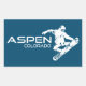 Aspen Colorado tem uma das melhores e mais famosas estações de esqui do estado, uma incrível paisagem montanhosa, e uma recreação interminável. Este design de excelente tem um esquiador puxando um salto com texto em negrito.