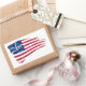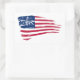 Imagem estilizada da bandeira americana com o símbolo ateu atômico no campo azul onde estariam as estrelas.