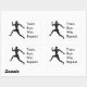Um conjunto de autocolantes retangulares com um gráfico de um atleta grego em funcionamento com a menção "Comboio. Corra. Ganhe. Repita." Definitivamente a fórmula de vitória universal para qualquer desportista.