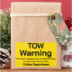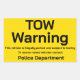 Placa amarela brilhante alertando que um carro, caminhão ou outro veículo está estacionado ilegalmente e sujeito a reboque. Isto é configurado para que você possa digitar o número do departamento de polícia.