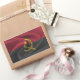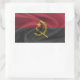 Adesivo com a bandeira de Angola em design de tecido ondulado. Este design apresenta as cores e o design da bandeira angolana com um efeito de textura de material ondulante lindo. Este design de bandeira é uma ótima maneira de mostrar que você tem orgulho de ser de Angola.