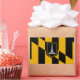 Vinheta com bandeira da cidade de Baltimore, Maryland; bandeira negra e amarela com uma ilustração do Monumento de Batalha