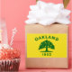 Vestidos com a bandeira de Oakland, Califórnia. Uma bandeira amarela com uma árvore verde