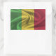 Adesivo com a bandeira do Mali em design de tecido ondulado. Este design apresenta as cores e o design da bandeira do Mali com um efeito de textura de material ondulante lindo. Este design de bandeira é uma ótima maneira de mostrar que você é orgulhoso de ser do Mali.