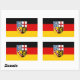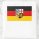 Vinheta com bandeira de Sarre; design com tricolor horizontal a preto, vermelho e amarelo (ouro), com casaco de braços do Estado no centro