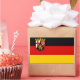 Vinheta com pavilhão da Renânia-Palatinado; design com tricolor horizontal a preto, vermelho e amarelo (ouro), com casaco de braços do Estado no canto superior esquerdo