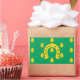 Vinheta com design com uma bandeira do condado histórico de Rutland, Inglaterra, Excelente-Bretanha; bandeira verde com bolotas e uma ferradura ouro no centro