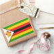 A bandeira do Zimbábue foi adotada em 18 de abril de 1980. A ave de sabão que figura na bandeira representa uma [estátua] de uma ave encontrada nas ruínas do Zimbabué Excelente. O pássaro simboliza a história do Zimbabué; a estrela vermelha por baixo simboliza a luta revolucionária pela libertação e paz.