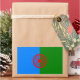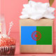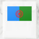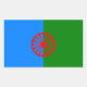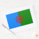 Bandeira oficial romanichel viajante de verde e azul que representa a terra e o céu com uma roda vermelha, representando viagem. Personalize este design excluindo ou alterando o texto.
