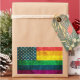 Este design único apresenta a bandeira dos Estados Unidos combinada com a bandeira orgulho gay do arco-íris com um efeito envelhecido e vestido. Grandes arranhões e speck cobrir o padrão que lhe dá uma aparência de safra. Texturas duras ajudam a criar um design de bandeira robusto que é uma forma na moda para mostrar seu patriotismo e apoio para questões de gay e lésbicas.