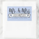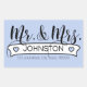 Especialmente para recém-casados este adesivo apresenta um belo texto de 'Sr. & Sra.'. Um banner branco decorado com corações mantém seu sobrenome enquanto seu endereço ou outras informações de contato podem ser adicionadas abaixo. O plano de fundo pode ser alterado para a cor de sua escolha. Os adesivos personalizados funcionam perfeitamente em convites, cartões de natal e itens de casamento.