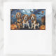 Libere o espírito assustador com esta design sombria do Dia das Bruxas apresentando um bando de cachorros sob um céu escuro e iluminado, cercado por morcegos voadores e abóboras brilhantes. Perfeito para aqueles que amam um toque de diversão terrível com seus amigos peludos!