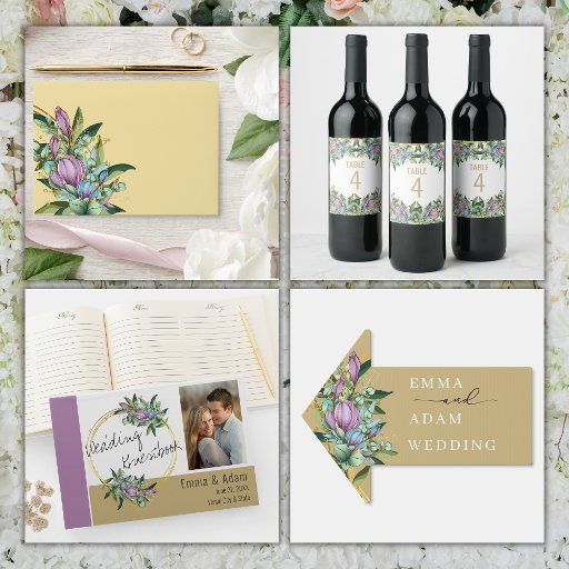 Adesivo Retangular Belo Casamento Botânico Roxo