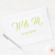 Os adesivos perfeitos para artigos de papelaria relacionados ao casamento, este item apresenta um esquema de cor branca e verde limão. Com limão escrito em fundo branco, as iniciais do casal estão no centro com a data do casamento embaixo. Personalize o seu hoje!