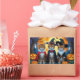 Uma cena divertida do Dia das Bruxas, com um pequeno gatinho malicioso a espreitar-se de uma abóbora esculpida, rodeada por vibrações de outono assustadoras. Com um charme viscoso e cores de outono, é o toque perfeito de humor para a estação.