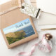 Esta design moderna é uma foto dos Clames de Moher no extremo sudoeste da região de Burren em County Clare, República da Irlanda. Vocês podem ver as camadas rochosas, e rochas se posicionando contra o oceano azul escuro, algumas ondas espumantes, e o mar se estendendo ao horizonte, com as Ilhas Aran muito ligeiramente visíveis a distância. Os penhascos têm grama verde, o céu é azul claro e cinzas, e as nuvens são brancas e cinzas. Uma cena belíssima e pacífica! O texto diz "Obrigado!", mas é editável como você precisa. Um adesivo adorável para expressar gratidão e obrigados, para o seu negócio ou envelopes pessoais!