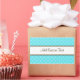 Um azul quase bonito com bolinhas leves. O centro tem um retângulo branco com um contorno marrom escuro que pode servir de destaque para o seu texto personalizado ou, se preferir, pode removê-lo facilmente.