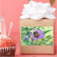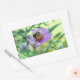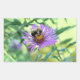 Uma abelha amarela felpudo ocupada coletando pólen em uma margarida roxa e aproveitando o belo dia ensolarado. Envie esta imagem a um amigo ou amado como parte de um presente.