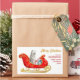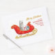Nestes adesivos decorativos de Férias, um cão Samoyed branco senta-se num bonito trenó decorativo vermelho e dourado. Ao lado do cão, os pacotes de presentes são amarrados com arcos coloridos. O texto dourado à direita diz "MERRY CHRISTMAS" e o texto personalizado está vermelho. Perfeito para sua correspondência de Natal ou pacotes de presentes! Há muitas outras imagens e produtos de raças na Dog Village.