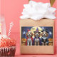 Uma cena divertida de Halloween, com um cachorrinho malicioso a espreitar-se de uma abóbora esculpida, rodeada por vibrações de outono assustadoras. Com um charme viscoso e cores de outono, é o toque perfeito de humor para a estação.