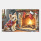 Adesivo Retangular Cairn Terrier Sitting Fireplace Christmas Lights
