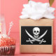 Baseado na bandeira pirata de Calico Jack. Se você quiser uma cor de fundo diferente, escolha o recurso "personalizá-lo" e exclua a imagem de fundo preta. Você pode definir a cor de fundo como rosa ou roxo ou sua cor favorita. Adicione sua própria mensagem "Fale como um pirata". Veja a fonte "Gatekeeper" no sistema... ela é suficientemente pirata.