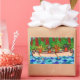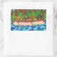 Estes jovens felinos aventureiros estão a fazer canoagem numa zona calma de um rio da Calfórnia norte. Cada gato está vestindo um colete vermelho e amarelo para segurança e desfrutando do cenário de tirar o fôlego. Ao longo da borda do rio, crescem árvores de madeira avermelhada e outras culturas abundantes, incluindo samambaias.